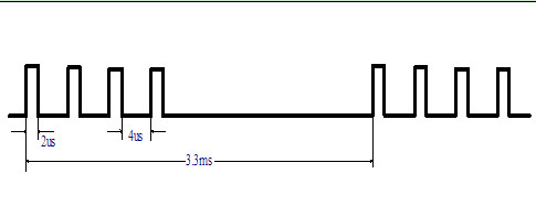脈沖頻率:1)連續(xù)四個脈沖串時,如圖所示。f=300Hz(T=3.3ms)